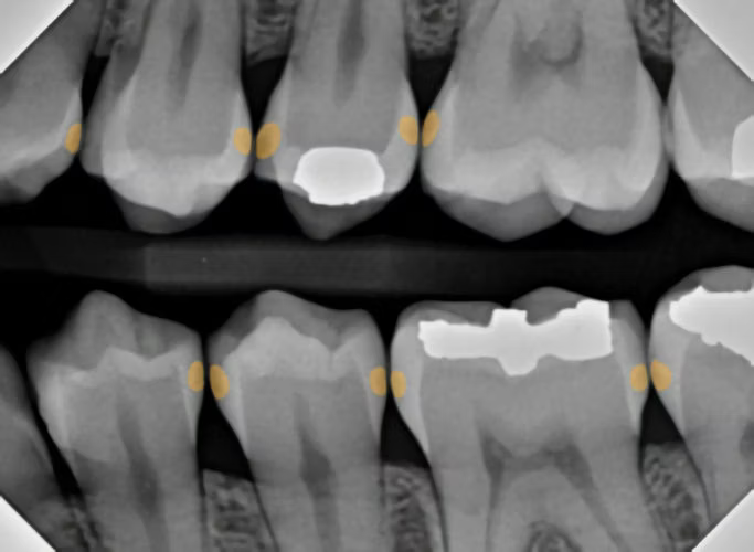 Rather than the discernment of various shades of gray resting on the shoulders of the clinician, who may or may not have adequate time in every different clinical scenario, decay is highlighted by the computer AI software itself, making it a bit more difficult to miss a lesion and highly documenting the degree of enamel or dentin penetration of the lesion.